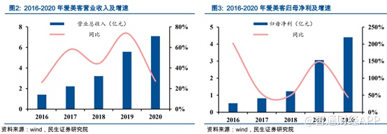 作为国内医疗美容针剂的龙头企业,爱美客近几年的财务表现是十分优秀的。具体来看,2016-2020 年公司收入复合增速高达 49.74%。尽管2020上半年受疫情冲击,但全年公司仍实现收入7.09 亿元,同比增长 27.18%;归母净利4.40亿元,同比增长3.93%,其中以嗨体为主的溶液类产品更是以高达4.4 亿元的销售额, 83%的增速独领市场。