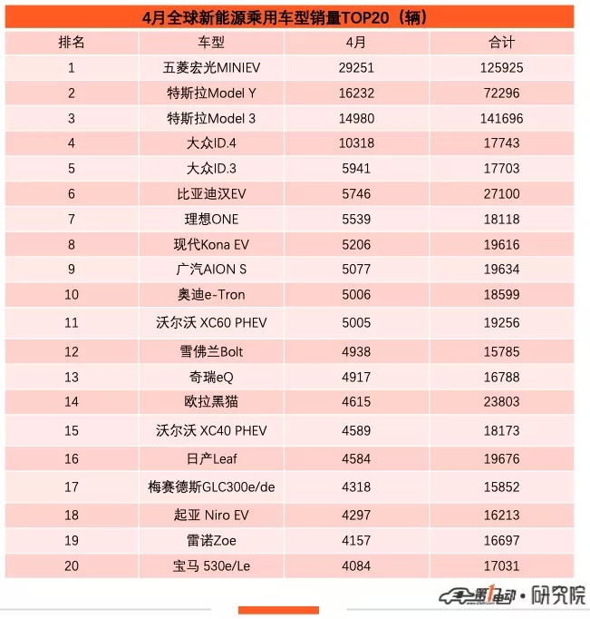 从最近公布的全球新能源车4月销量榜单来看:特斯拉环比暴跌71%,大众首进前三,Top5只有比亚迪(01211)环比上升。