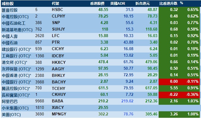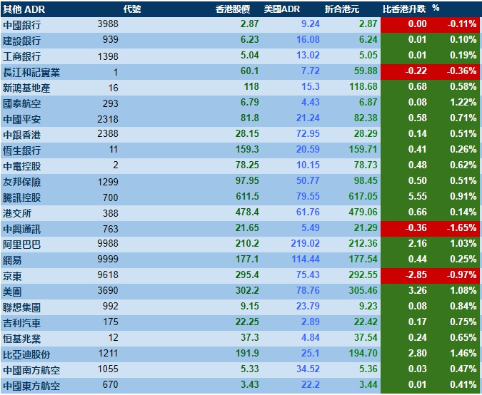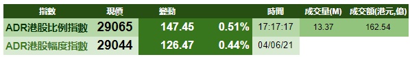 智通财经APP获悉,周五美股三大指数上涨,港股ADR指数跟随上涨,按比例计算,收报29065点,涨147.45点或0.51%。