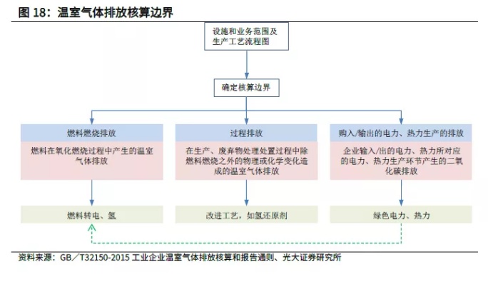 从微观角度看,工业企业碳核算边界内主要包含三个方面: