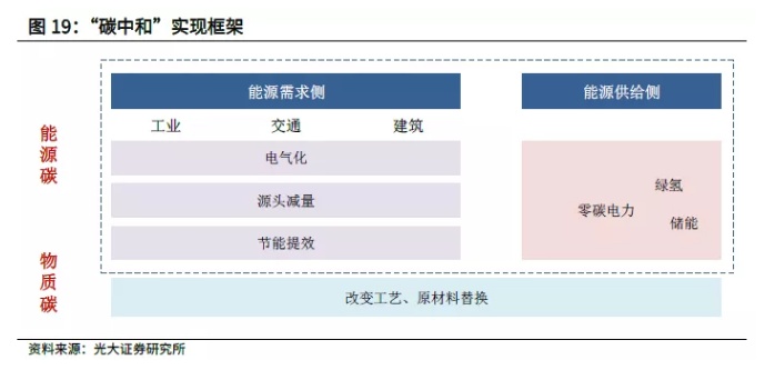 我们从“能源碳”和“物质碳”两方面出发,构建了“碳中和”的实现路径。