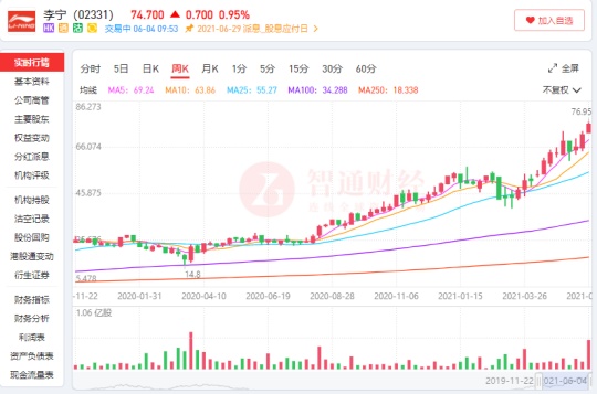 李宁的销售增长也给二级市场的投资者带来了很强的信心和预期,李宁的股李宁的股价从4月份开始上涨了近50%;而从资本市场的表现来看,市场对李宁的追捧,并非突发事件催化的短期行情:近年来,李宁的股价一路走高,从2016年初开始,从约3.88港元/股飙升至如今的74.7港元/股,涨幅超过1600%,总市值超1800亿港元。