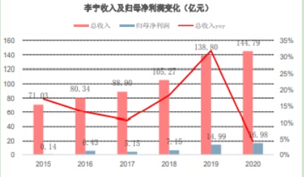 李宁近些年的发展市场有目共睹,券商也给出积极信号。国金证券表示,作为运动服饰龙头公司,公司有望持续加强竞争优势,享受一定的估值溢价。且公司2020年受疫情影响收入端承压,随着疫情得到控制,增长弹性较大。在未来 2-3 年净利率有望逐步提升至中双位数,预计2021年归母净利润为22.8亿元(上调21%),2022 年归母净利润为28.8亿元(上调27%),2023年为35.5亿元。天风证券研报指出,中国李宁门店上限在 500家-650家之间,预计中国李宁系列2025年将会接近渠道数量上限,届时该系列流水规模有望突破50亿元。