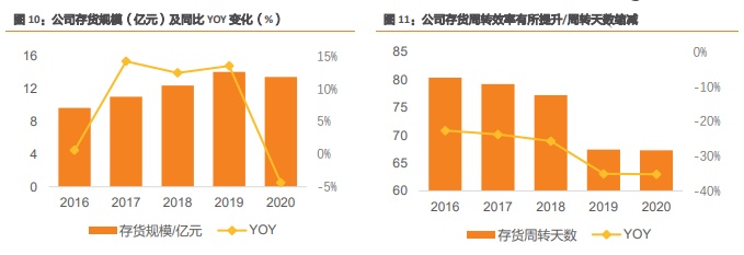 从渠道来看,线下门店优化增效,2017年提出大店战略,2017年至2020年,直营店净减少了366家,加盟店净减少了859家。从店效来看,2016年-2020年直营店平均店效CAGR为13.10%;加盟店平均店效CAGR为11.42%,均实现显著改善。