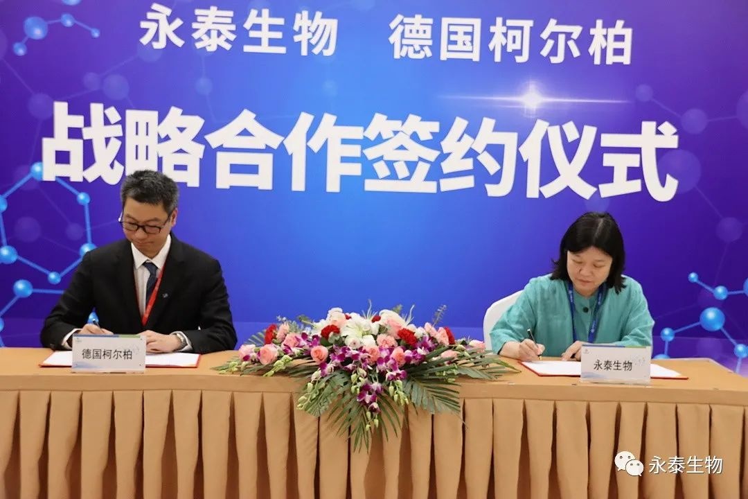 2021年6月4日,永泰生物-B(06978)与德国柯尔柏在京签订了战略合作协议。永泰生物CEO王歈王总与柯尔柏医药科技中国区总经理郑磊明郑总等出席了签约仪式。
