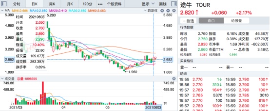 虽然公布的一季度财报数据并不好看,但看上去这并没有妨碍途牛(TOUR.US)最近两个交易日股价走强。6月3日,途牛股价收盘大涨10.4%,报2.76美元。6月4日,途牛延续了上一个交易日的强势,盘中虽短暂下挫,但最终依然收涨2.17%,报2.82美元。