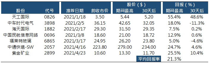 进出口高景气推动港口吞吐量走好,助力青岛港(06198)业绩增长。中国5月出口/进口分别同比增长27.9%/51.1%,进出口高景气推升港口吞吐量:沿海主要港口合计货物吞吐量/集装箱吞吐量4月分别累计同比增长13.4%/17.1%,其中青岛港货物吞吐量/集装箱吞吐量4月分别累计同比增7.8%/11.7%(青岛港货物吞吐量2020年1季度同比数据为正,排除低基数因素),港口吞吐量走好将助力公司业绩增长。此外,公司大股东青岛港集团于5月21日以每股4.63港元的价位增持2900万股,彰显对公司发展的信心。