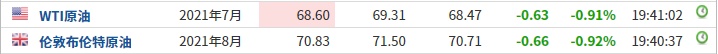截至发稿,WTI原油跌0.91%,报68.60美元/桶。布伦特原油跌0.92%,报70.83美元/桶。
