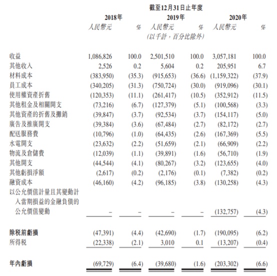 同时,在连亏三年之后,奈雪终于在2020财年迎来了首度盈利。更新的招股书显示,奈雪的茶经调整净亏损(非国际财务报告准则计量)由2018年的5660万元大幅减少至2019年的1170万元,进一步扭转为2020年的经调整净利润(非国际财务报告准则计量)1660万元,未经调整则为全年亏损超过2亿元。