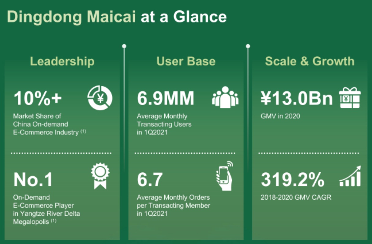 叮咚买菜创立于2017年5月,服务范围覆盖全国29个城市,其中5个城市的月度GMV达到并保持在1亿元人民币以上。同时,履行费用占总收入的比例从2019年的49.9%下降到2020年的35.7%。