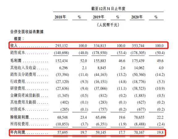 营收方面,从招股书披露的数据来看,近三年来该公司营收虽然保持增长状态,但增速已经出现放缓的趋势:2018年至2020年,该公司的营业收入分别为2.93亿、3.35亿和3.54亿元,逐年攀升,年复合增长率为9.9%。不过,从其2019年和2020年的营收同比增长表现来看,其增速已然出现下滑的情况,分别为14.33%、5.67%。