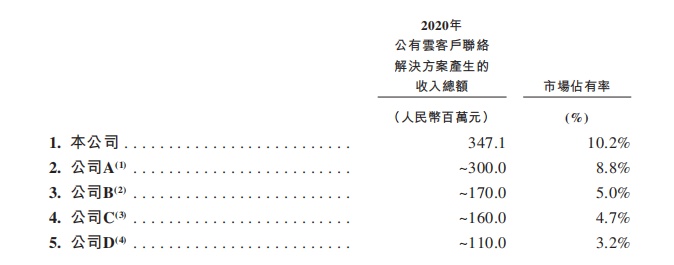 市场份额上,根据灼识咨询报告披露,于2020年,按收入计,该公司已经是中国最大的公有云客户联络解决方案供货商,市场占有率达10.2%;与此同时,于2020年,天润云亦是中国首家将平台与软件定义广域网络(SD-WAN)集成的客户联络解决方案供货商。