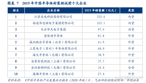 封测行业位于集成电路产业链末端,是劳动密集型行业。相对半导体设计、制造领域来说,封测行业技术壁垒、对人才的要求相对较低,是国内半导体产业链与国外差距最小环节。2019年国内封装测试前十名企业中,尽管目前外资企业在国内封测市场中仍占据较大份额,但内资企业占据前3名市场份额。