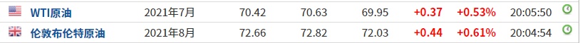 截至发稿,WTI原油涨0.53%,报70.42美元/桶。布伦特原油涨0.61%,报72.66美元/桶。