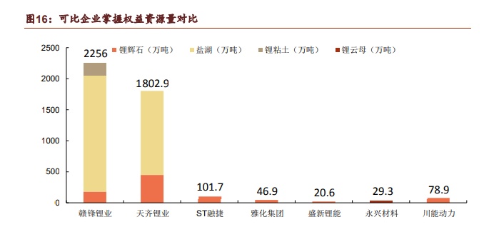申港证券研报指出,赣锋锂业所有项目投产后,公司原料自给率有望达到100%。其掌握的资源类型涵盖锂辉石、卤水、锂黏土等类别,合计控制资源量4818万吨(折 LCE),权益资源量达到2256万吨(折 LCE),行业对比优势明显。