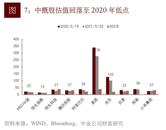 且如图7所示,经历调整后海外中概股估值回落至2020年3月低点水平,建议适度高配海外中概股。