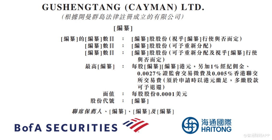 智通财经APP获悉,据港交所6月10日披露,固生堂GUSHENGTANG(CAYMAN)LTD.向港交所主板提交上市申请,美银证券集团及海通国际为联席保荐人。