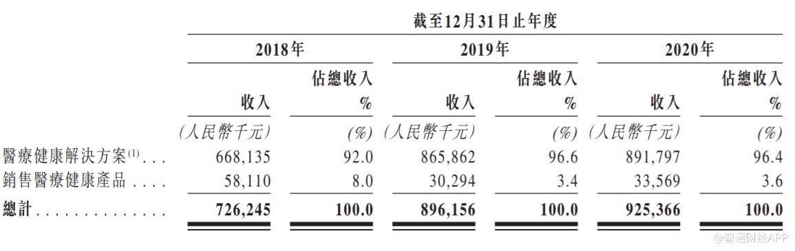 于往绩记录期间(2018至2020年),公司的收入主要来自(i)提供医疗健康解决方案;及(ii)销售医疗健康产品。公司来自提供医疗健康解决方案的收入主要受公司于有关年度营运的线上线下医疗网络规模、客户人数及客户消费额所影响。公司同时从为中小型中医诊所(均为独立第三方)提供第三方管理服务获得小部分收入。