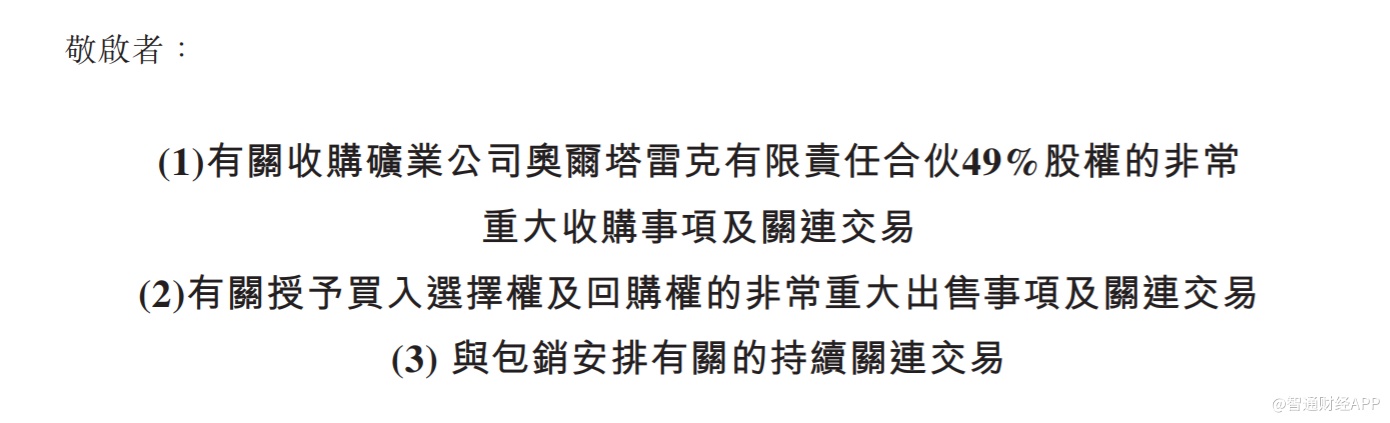 而通函中所提及的决议案主要涉及中广核矿业与哈原工签订股权认购协议,以4.35亿美元的价格收购奥尔塔雷克有限合伙企业(以下简称“奥公司”)49%的权益,以及相应的包销安排。