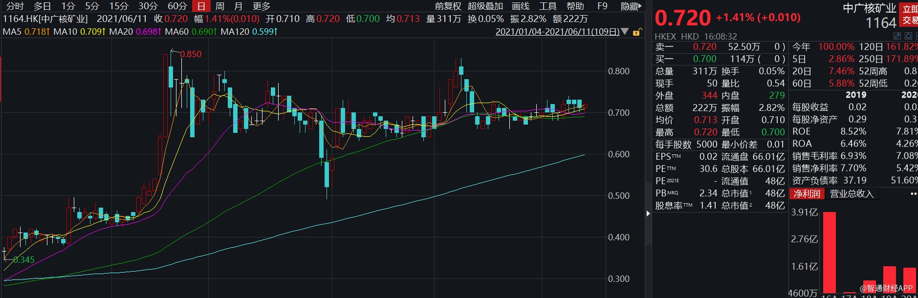 而从盘面上看,中广核矿业股价已盘整4个月之久,距离下一波的上涨或仅差一个契机。