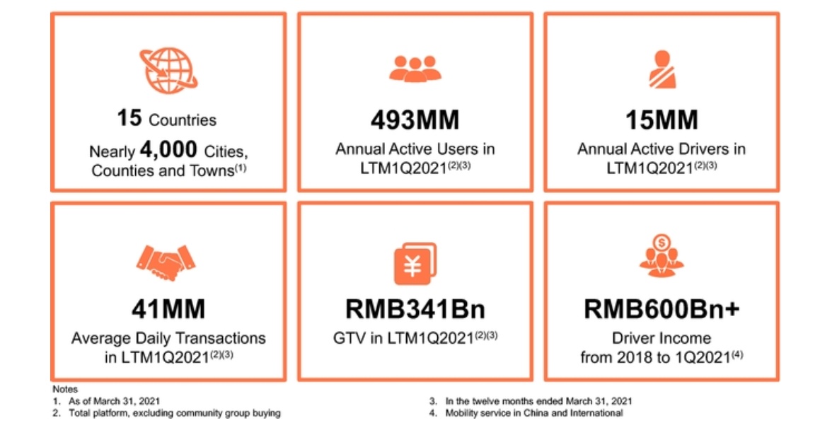 从单量和交易额来看,在截至2021年3月31日的12个月里,滴滴全球平均日交易量为4100万单,全平台总交易额为3410亿元。2018年1月1日至2021年3月31日的3年时间内,平台司机总收入约6000亿元。
