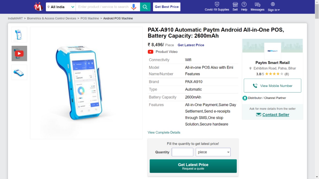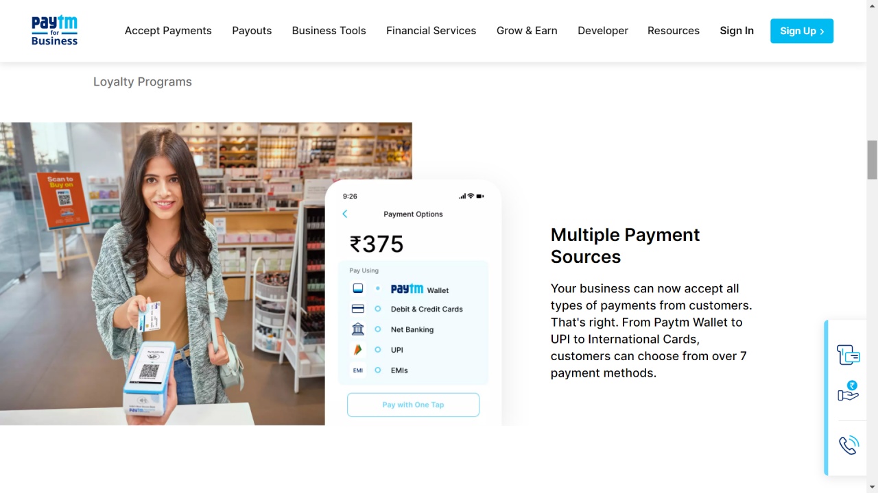Paytm官方网站展示了如何利用PAX A910智能手持终端,满足当地消费者会使用多种支付方式的消费习惯。
