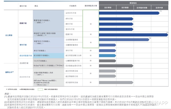 2021年6月,公司的腔镜手术机器人蜻蜓眼已经获得了药监局批准,公司的核心产品腔镜手术机器人图迈也在2021年5月完成了泌尿外科手术的临床试验,并且已经向药监局提出了注册申请。