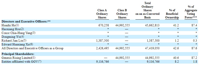 截至2021年3月31日,公司创始人、董事长兼首席执行官Huazhi Hu持有公司41.2%的股权,投票权为87.4%;