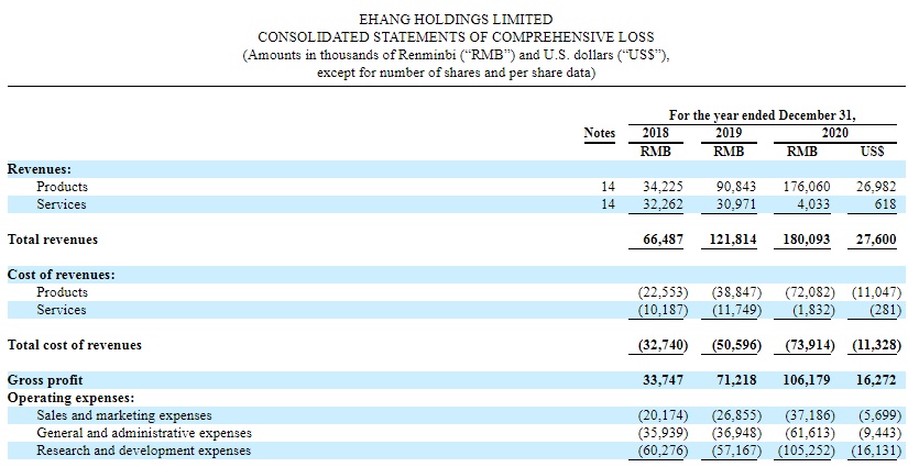 智通财经APP获悉,6月15日,亿航智能(EH.US)向美国SEC递交了20F报告,披露了公司截至2020年12月31日的2020年年报和最新股权结构。财报显示,公司2020年总营收为1.801亿元(人民币,下同),同比增长47.8%。