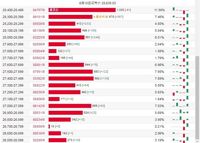 牛证街货重货区在28400-28499区间,该区间最新牛证数量为1030张,较上一交易日减少41张;最多新增在28300-28399区间,该区间最新牛证数量为678张,较上一交易日增加367张。