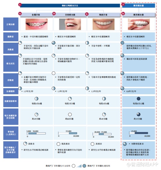 首先,相比于传统正畸疗法,隐形矫治更依赖隐形矫治解决方案提供商,对牙科医生的要求比较低,更容易推广。这也意味着具有丰富临床经验的隐形矫治解决方案提供商,在整个产业链中更具有竞争力。
