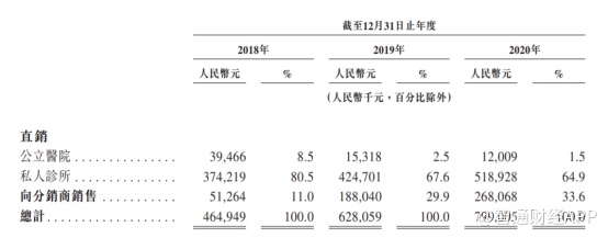 再看渠道方面,时代天使直销与分销商并重。分拆历年公司前几大客户数据,可以看到公司大客户集中度不高,主要的客户类型包括公立医院、私人诊所和分销商这几类。从过去的销售渠道来看,直销一直是公司的主要销售渠道,其中私人诊所收入快速增长,这与隐形矫治医保不覆盖、主要在私立医院消费的行业现状吻合;此外,公司来自于经销商的收入占比稳步提升,由 2018 年的 11%提升至2020 年的 33.6%,这一增长与公司快速扩张相吻合。