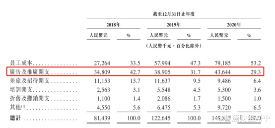 随着公司品牌、渠道端竞争力逐步增强,公司的销售费用率也在下降。分拆公司销售费用,最大的销售成本依然是员工成本,2018年至2020年中,员工成本占比分别为 33.5%、47.3%及53.2%,占比逐步提升,员工成本占比的提升一方面来自于销售人员团队扩大与薪酬的自然增长。另一方面,公司广告推广开支较为稳定,2018至2020年,公司的推广费用相对稳定,占比呈逐年下滑的趋势,进一步说明公司产品品牌力深。