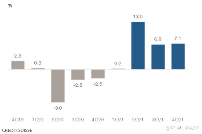 增长和每股收益都处于高位,投资者担忧这种情况难以维持。这位策略师表示:“尽管改善的步伐肯定会放缓,但预计到2022年底,增长仍将远远高于趋势水平。”