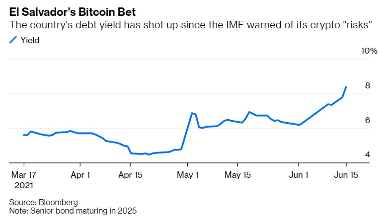 现在看来该国的种种举措都像是一场赌博。最近萨尔瓦多国债遭到抛售,收益率升至8%以上,创下1月份以来的最高水平。