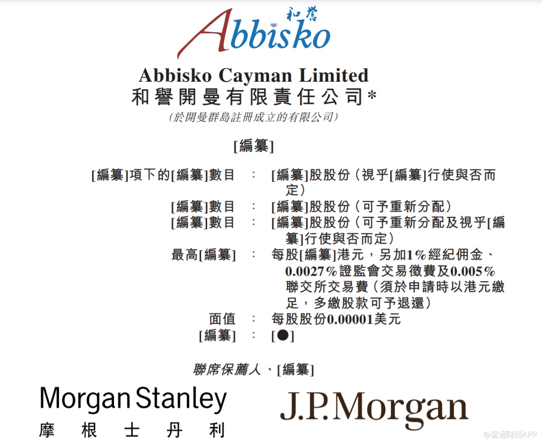 智通财经APP获悉,据港交所6月16日披露,和誉开曼有限责任公司(Abbisko Cayman Limited)向港交所主板提交上市申请,摩根士丹利及摩根大通为联席保荐人。
