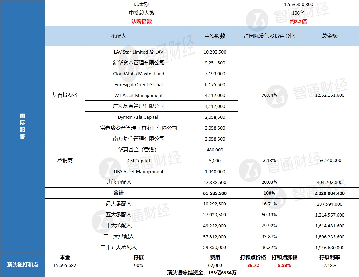 国际配售申购人数未披露,认购倍数约8.2倍。