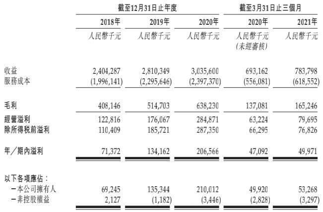 盈利方面,报告期内公司的综合毛利率不断走高。2018年-2020年,公司整体毛利率由17%提升至21%,并进一步爬升至2021年3月末的21.1%。