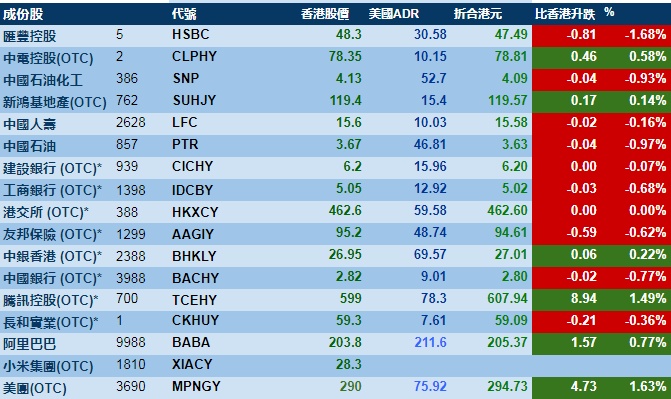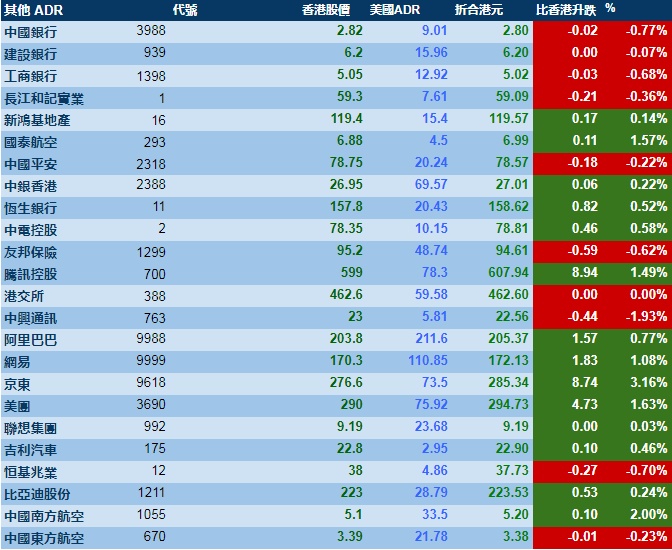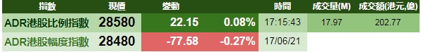 智通财经APP获悉,周四美股三大指数涨跌不一,港股ADR指数上涨,按比例计算,收报28580点,涨22.15点或0.08%。