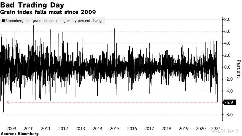 智通财经APP注意到,大豆期货已经抹去了2021年的以来升势,较5月份创下的8年高点下滑逾20%。此外,玉米、小麦也从多年高点下跌。彭博谷物现货分项指数周四出现2009年以来最大跌幅。