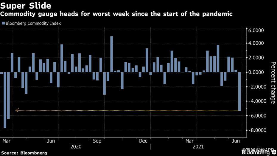 本周,一些商品明显受美联储加息信号的打击,伴随美元上涨,彭博商品指数将创下疫情爆发以来最糟糕的一周。