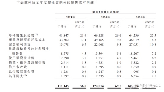 从成本角度来看,作为一家医疗机构,公司主要的成本支出在于专科医生服务费,从2018财年的4184.7万港元提升至2020财年的6423.6万港元。专科医生服务费大幅提升的原因为2019财年,公司新增5名股权合伙人医生,因此使得该费用增加。