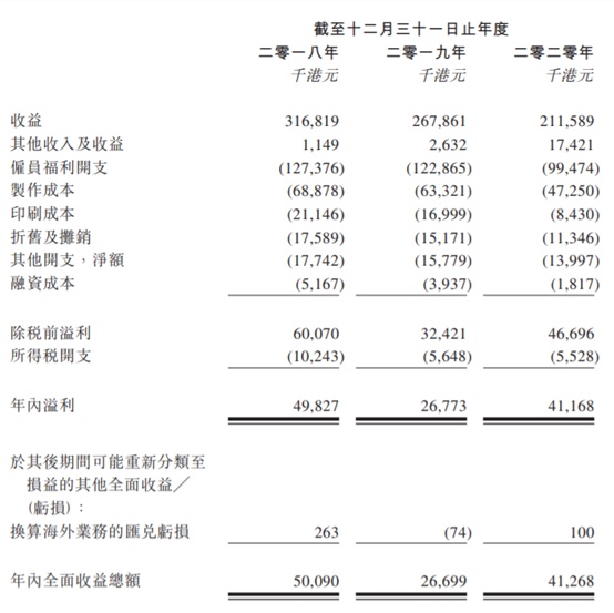 然而,香港的宏观大环境在近两年以来屡有波折,广告行业也随之“潮起潮落”。从新传企划近来的景况来看,公司的收益由2018年的约3.16亿港元逐渐降至近年以来的2.11亿港元,呈现连年下滑的趋势,公司表示主要与近年以来香港经济承压和新冠疫情影响导致香港“封关”有关联。