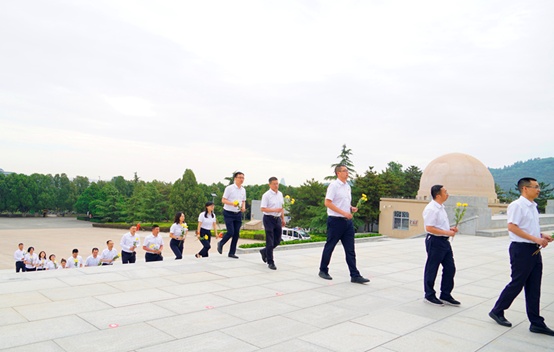 图为全体党员列队瞻仰烈士纪念碑并敬献鲜花