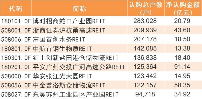 数据显示,首批9只公募REITs合计吸引了近150万户投资者认购,净募集资金超过300亿元。平均战略配售比例为66.8%,平均有效认购倍数近8倍。