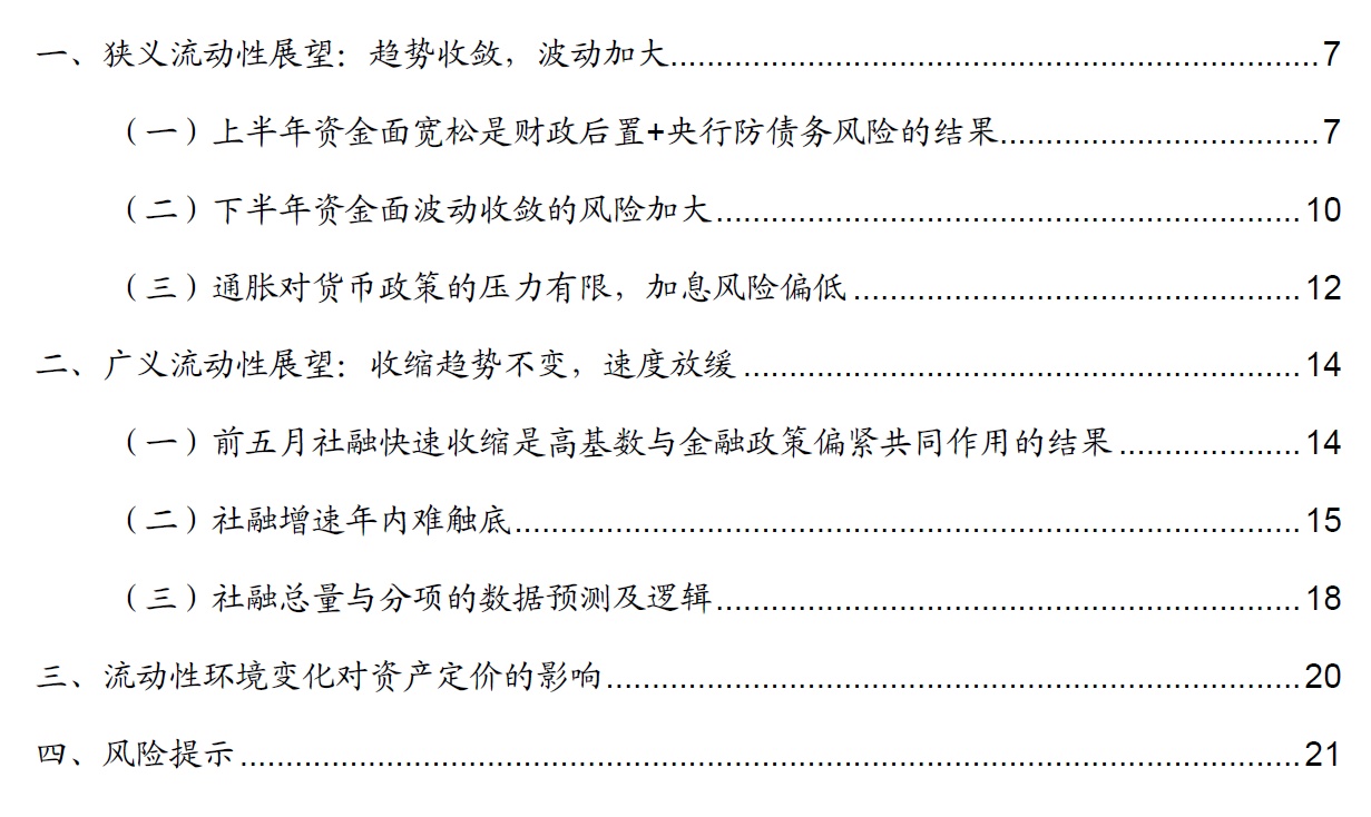 狭义流动性领域的风险在于金融市场下半年再度出现类永煤事件,货币政策主线在下半年继续坚持防范债务风险。