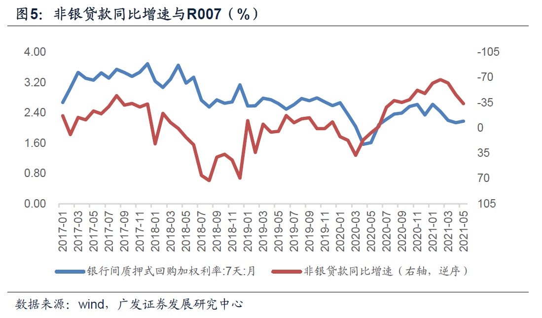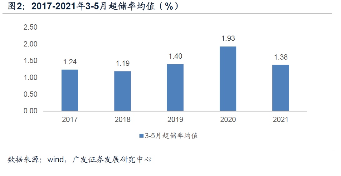 这一方面让更多的准备金留存在银行体系,增加了银行体系的资金供给(超储)。我们的测算结果显示,今年3-5月份银行超储率是1.53%、1.24%与1.36%,与2017-2020年同期相比,算是中性偏高的水平。