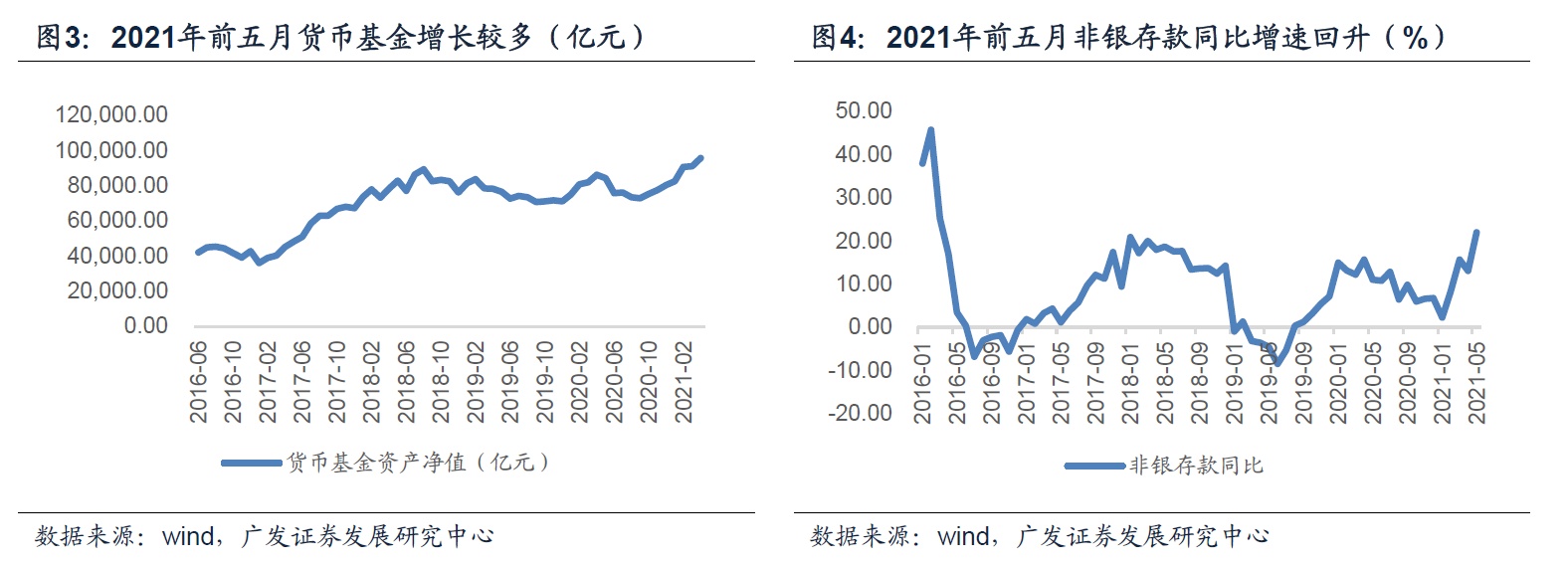 信托贷款去年前5个月增量为-444亿元,低于2018-2019年,并不存在高基数问题。今年同比收缩较多是因为宏观环境偏暖,商品价格上涨较多,金融监管压力前置。前置的监管压力既可提前压降债务,与高名义GDP形成共振,推动宏观杠杆率进一步下降,也能压制地产融资,为大宗商品和热点城市房价降温。