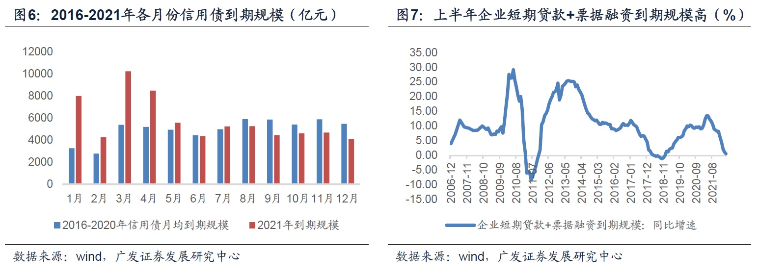 从实际情况看,债券市场上半年虽然没有发生类永煤或包商的黑天鹅事件,但由于今年上半年是债务到期高峰,尤其是去年抗疫发力较为明显的表内信贷和债券融资,到期规模偏高;永煤事件后,债券市场仍存在较为明显的信用分层现象。