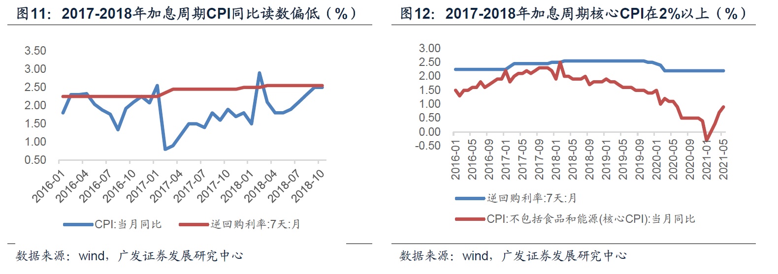 2017-2018年是最近一轮的加息周期,供给存在约束+需求不差、商品价格上涨的经济环境与现在有一定的相似性。回顾那一轮加息周期过程中CPI、PPI与核心CPI的表现,可以帮助我们理解各种通胀指标在央行货币政策制定中的权重位置。